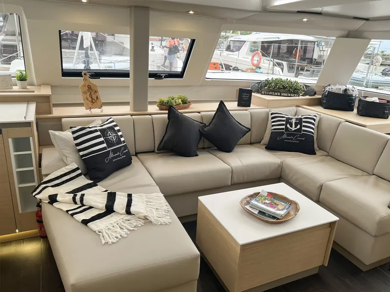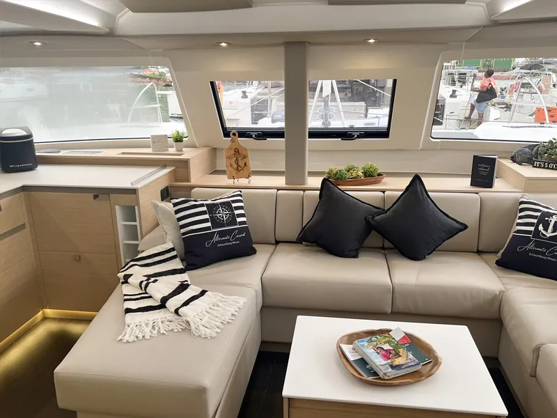 The Elba 45 is a stylish catamaran that allows the skipper to share the experiences with the crew, whether they are enjoying the views on the u-shaped seating of the lounge deck or relaxing in the cockpit. We have added additional options for both ease of sailing and fun for all aboard.