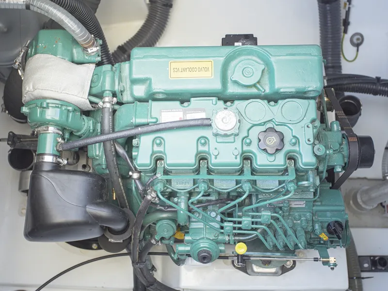 The Elba 45 inverted bows, and a 13.45m waterline promises great average speeds while under sail. Powered by a pair of 60hp Volvo diesels with saildrives (50 hp is standard), the Elba has plenty of power to cruise comfortably when engine power is required. There is large 12” Garmin chart plotter at the helm, 10mm dyeenma main halyard for ease of raising and lowering the main sail, 5 house batteries and 1200 watts of solar power.